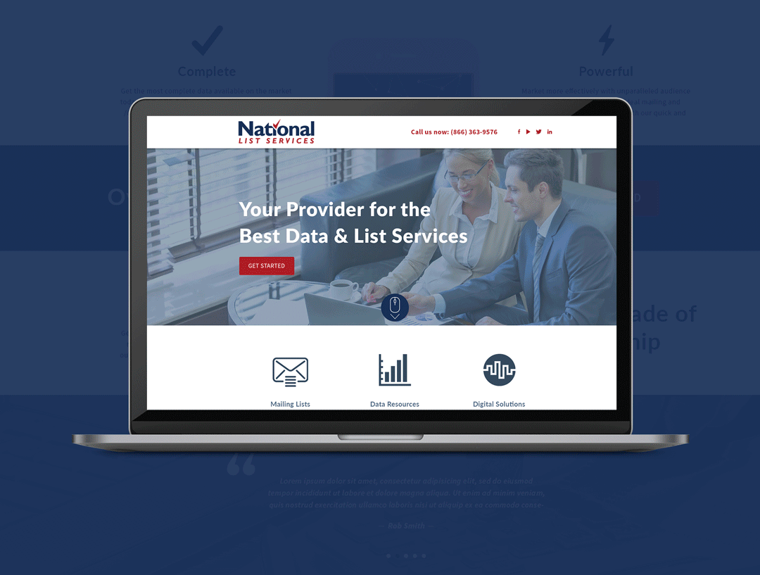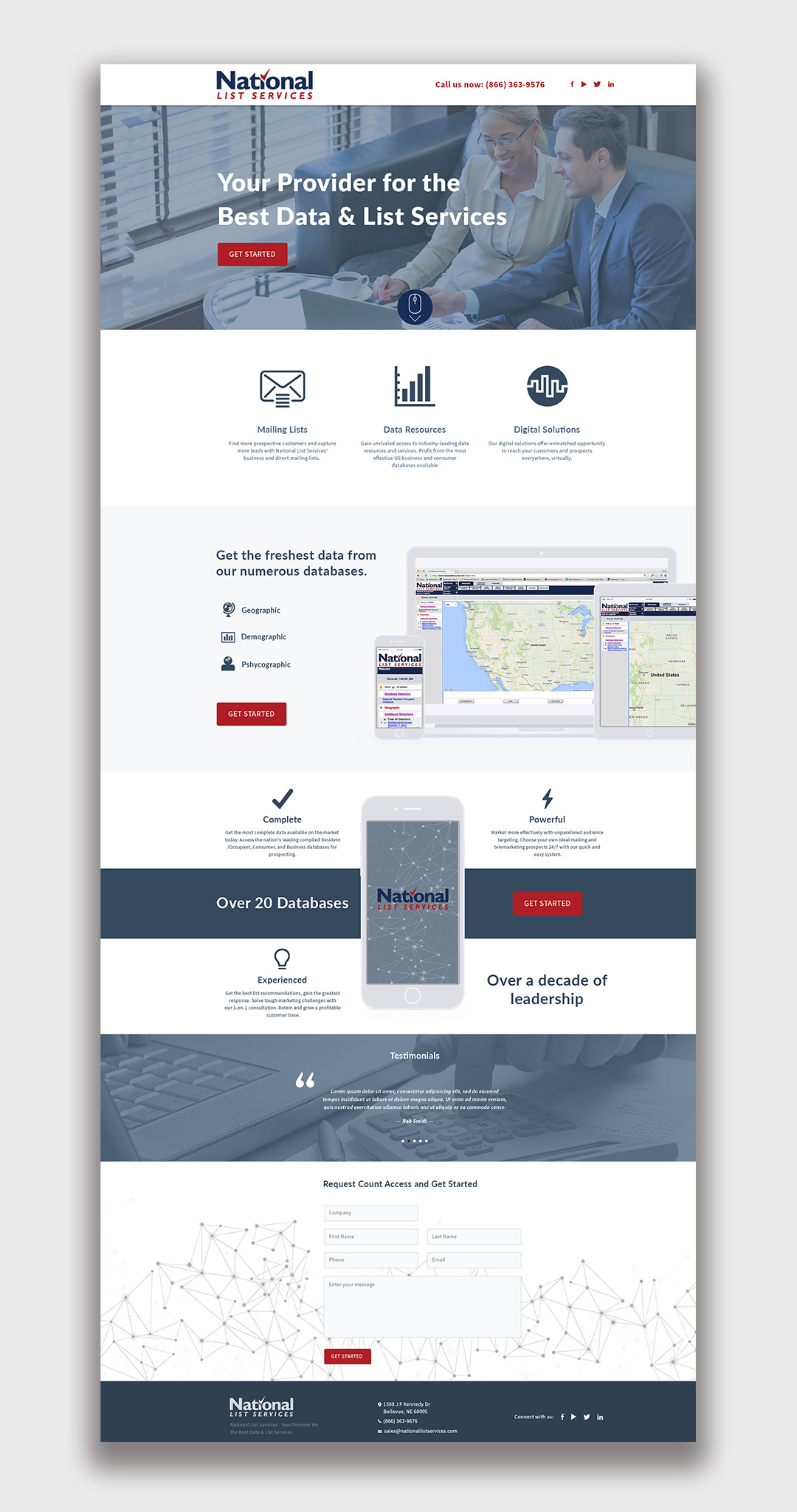 Design landing page for the company National List Services to promote the company via various social media platforms.