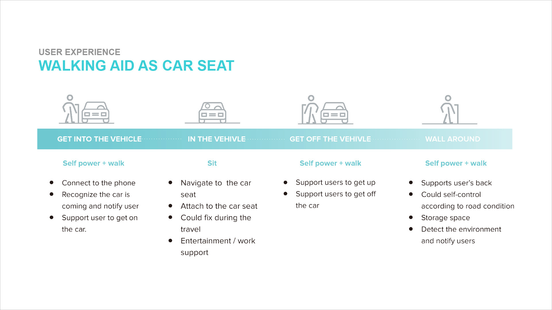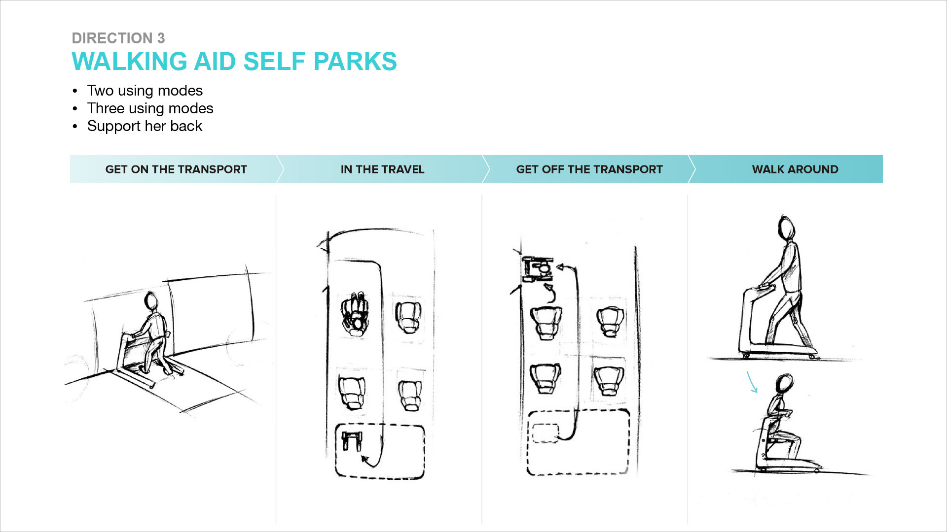 The team spent the first half of the semester utilizing benchmarking, interviews and past projects reviews to gain insight on current autonomous technologies and how it is impacting people. The second half of the semester was spent developing concepts for an autonomous walking aid and storyboarding.